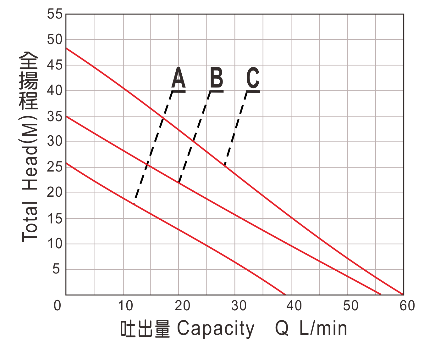 | 型號 | 馬力 | 口徑 | 相數 | 最大水量 | 最大揚程 | 重量 | 曲線代碼 |