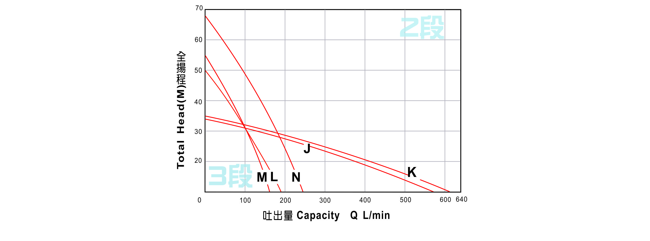 - 視揚程、水量要求,採單、雙、三段葉輪設計。