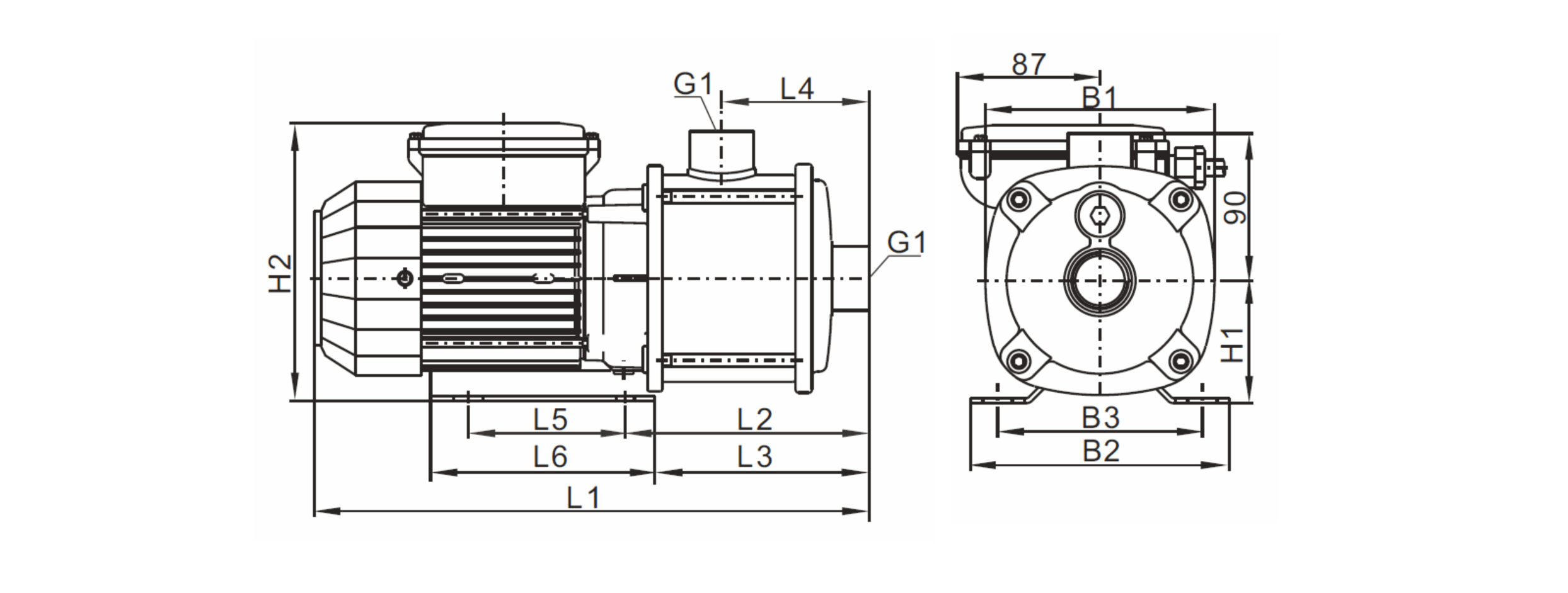 | B1 | B2 | B3 | H1 | H2(單相) | H2(三相) | L1 | L2 | L3 | L4 | L5 | L6 | KG | |