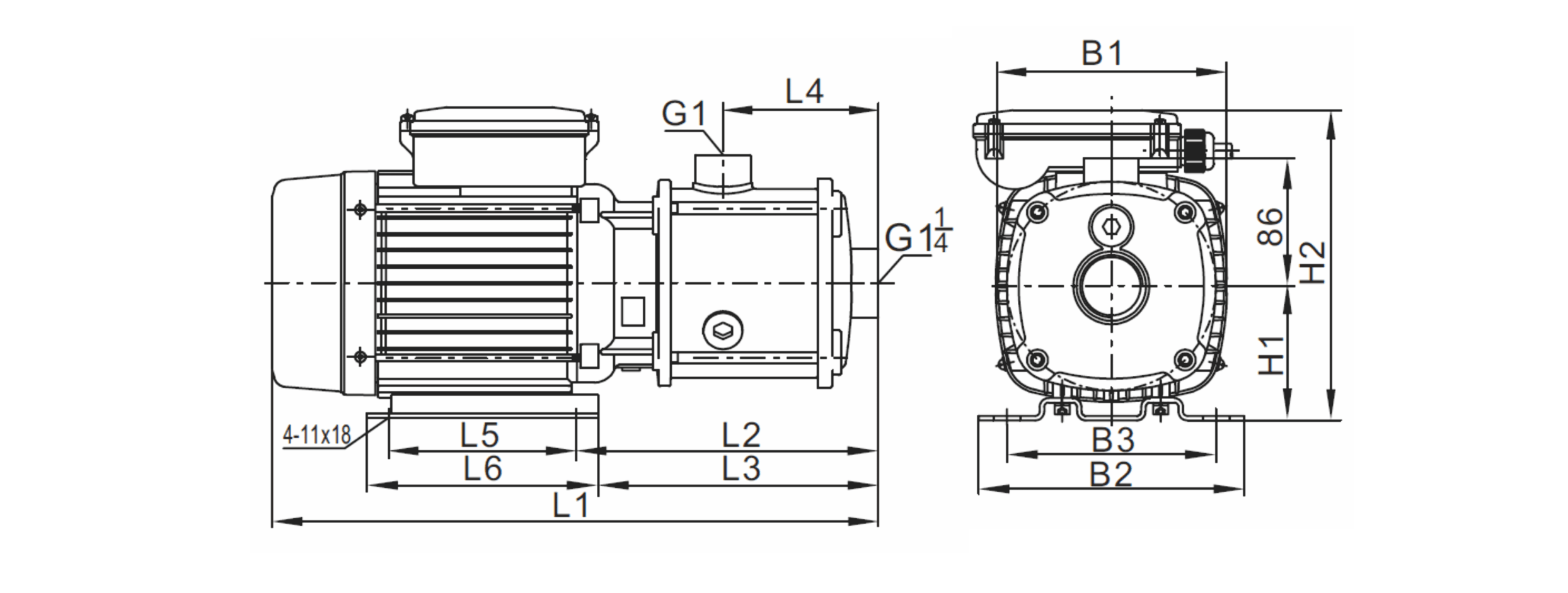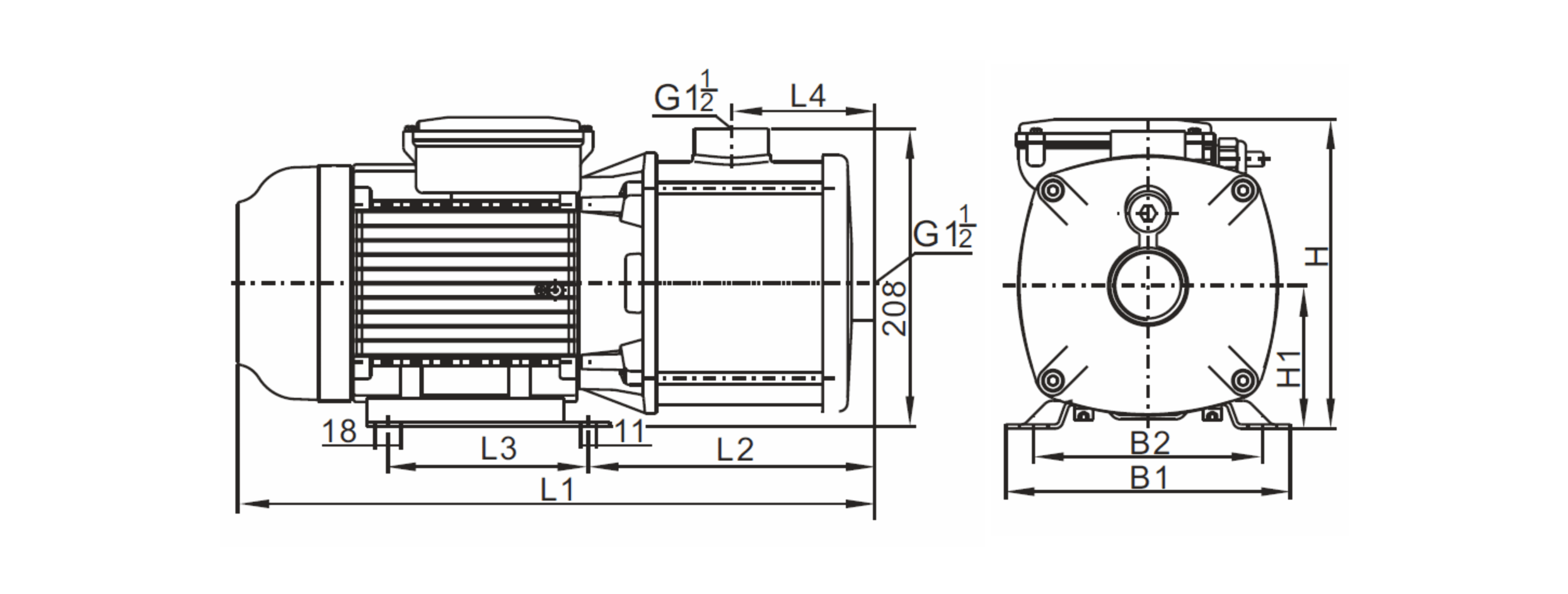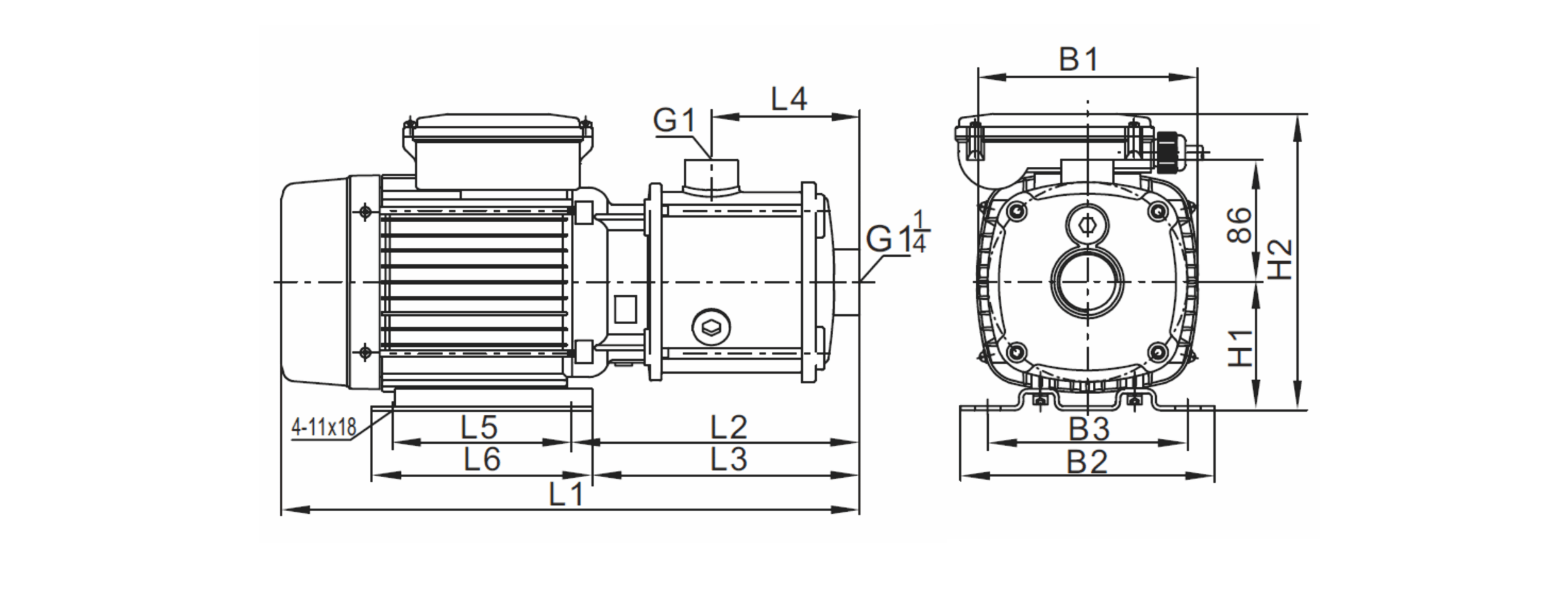 | B1 | B2 | L1 | L2 | L3 | L4 | H1 | H | KG | |