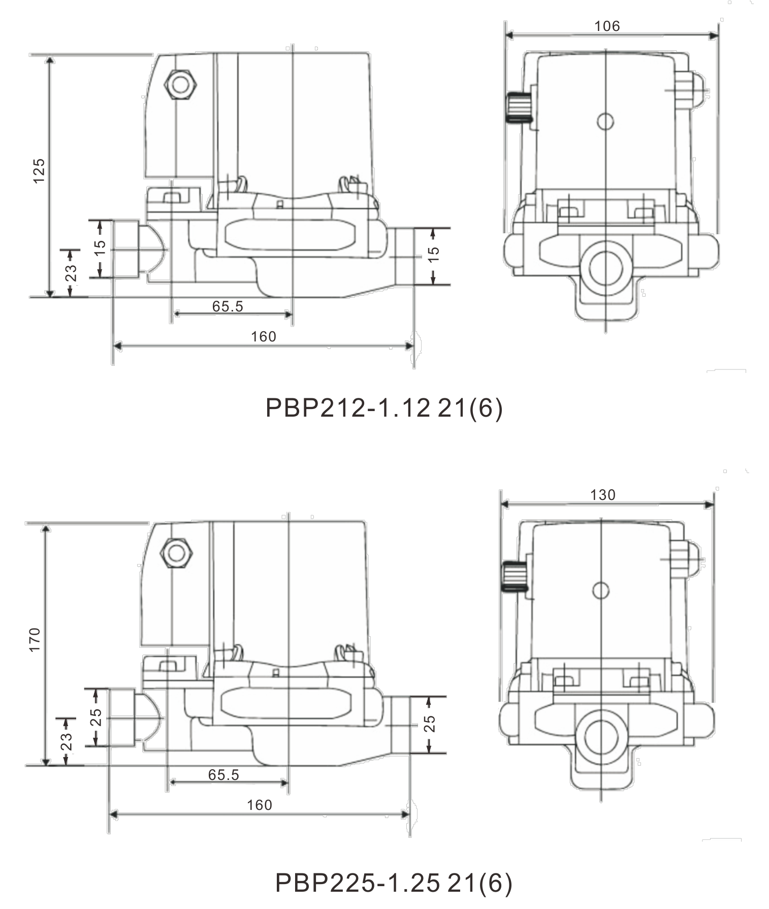 | PBP225-1.25 21(6) | ⅓ (0.25) | 1" (25) | 110-220 | 55 | 13 |