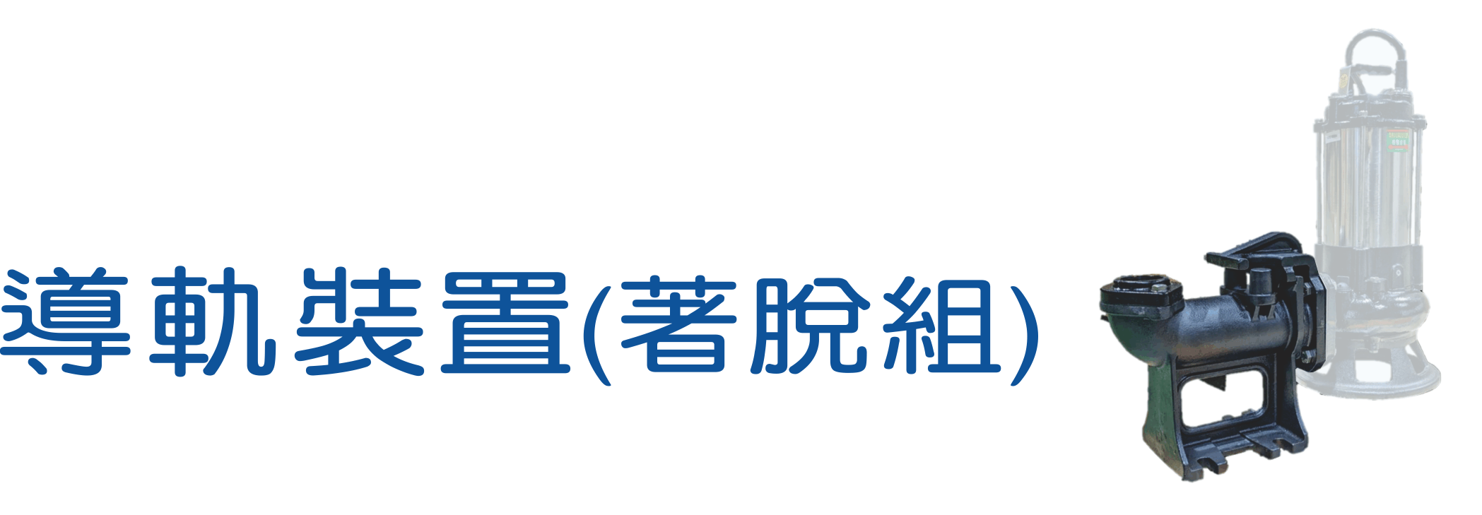 導軌裝置(著脫組),藉由簡便的安裝施工將輸水管固定接於著脫架的主體鞍座上,遇泵浦需保養維修時,可輕易的藉由吊鏈順由導桿進行昇降、脫離、結合等作業。