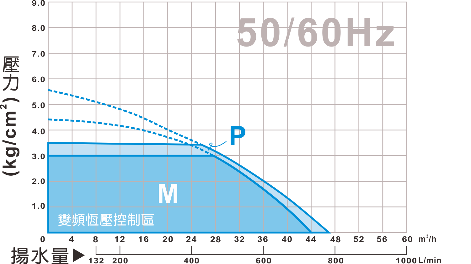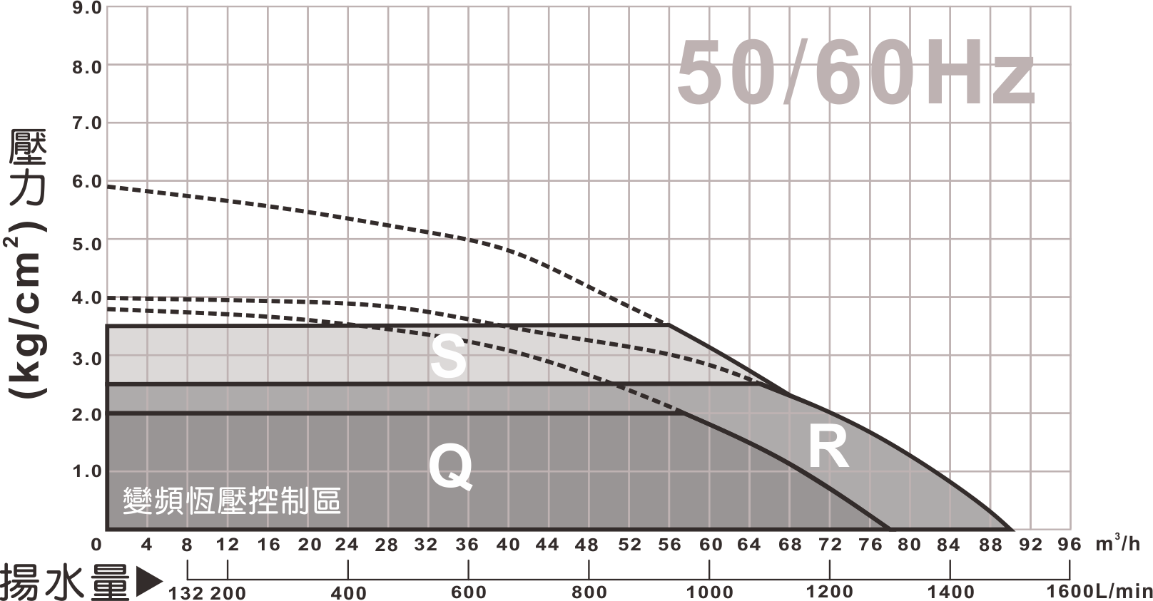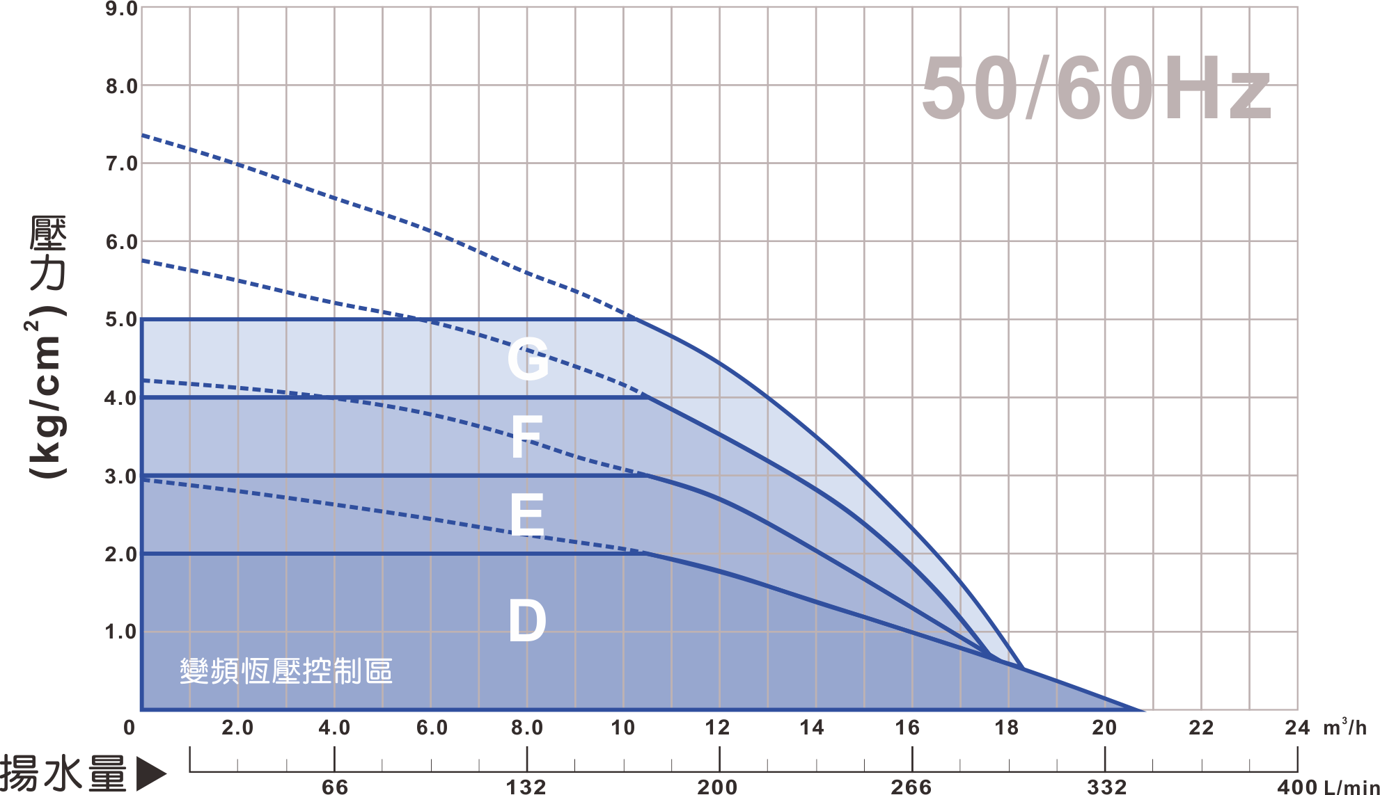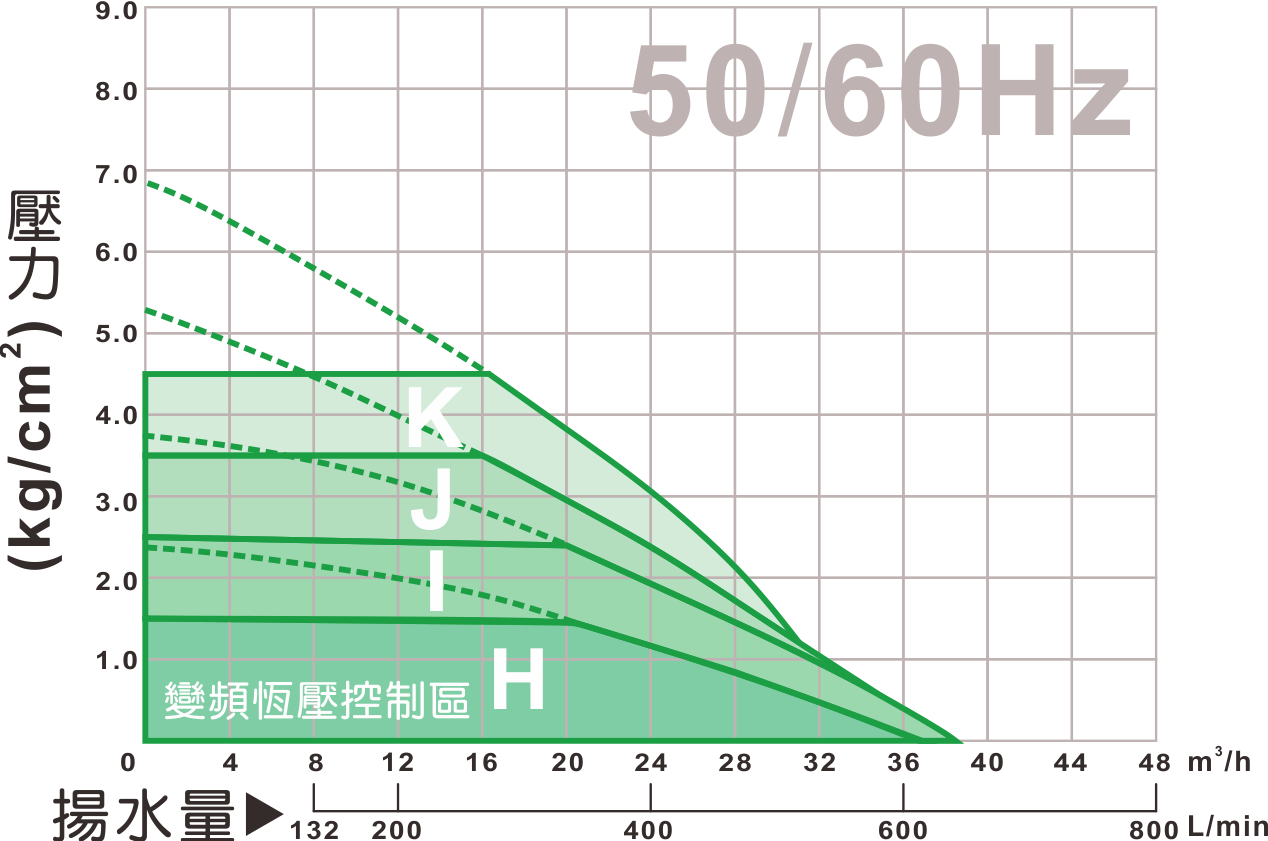 | 型號 | 馬力 | 相數 | 標準水量 | 標準揚程 | 恆定壓力 | 曲線代碼 |
