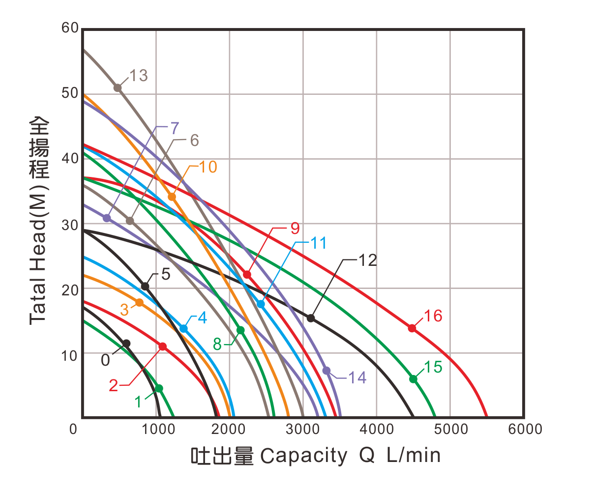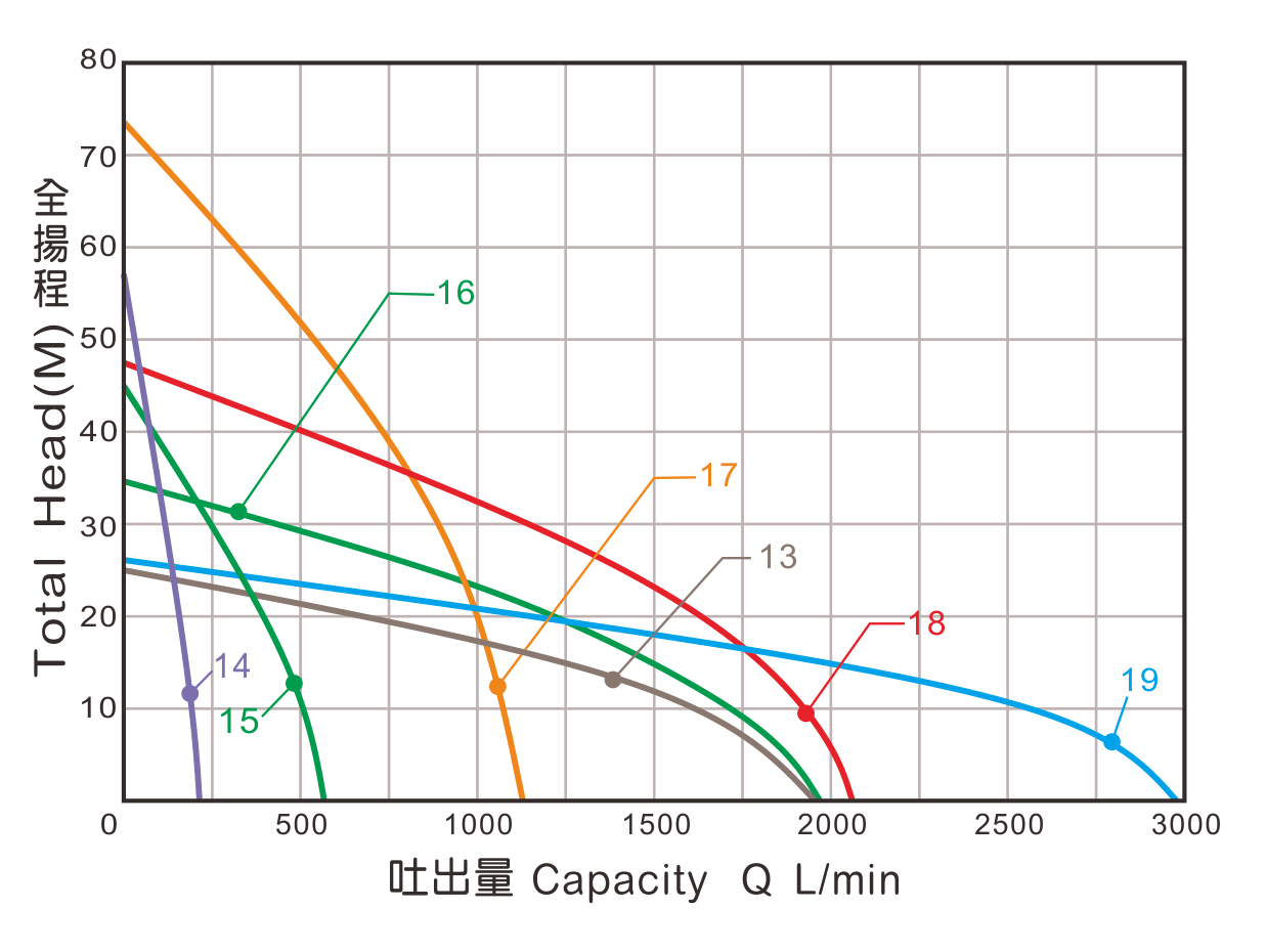 | 型號 | 馬力 | 口徑 | 最大水量 | 最大揚程 | 重量 | 曲線代碼 |