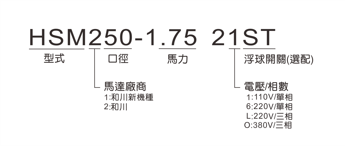 | 型號 | 馬力 | 口徑 | 相數 | 標準揚程 | 標準水量 | 全揚程 | 最大水量 | 重量 |